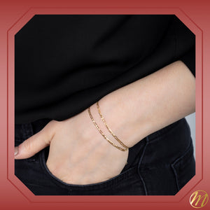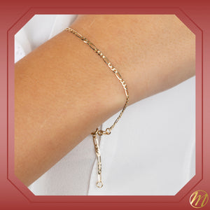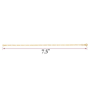 Gold figaro bracelets for men: Indulge in the timeless allure of gold figaro bracelets with our exquisite collection made in Italy. Our high-polished 14k solid yellow gold figaro link chain 3+1 bracelet, also known as a 3 to 1 or 3:1 men's bracelet, is a true statement piece, boasting a width of 2mm and a length of 7.5 inches. With a diamond-cut design adding brilliance to its shine, this bracelet exudes fine quality and luxury gold jewelry for men.